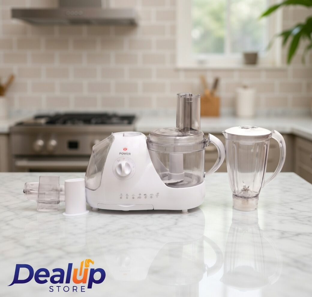 This versatile white food processor and blender combo is designed to make your kitchen tasks faster and easier. It features a sturdy main unit with multiple speed settings and a convenient pulse function, allowing you to chop, slice, shred, mix, and blend with precision.