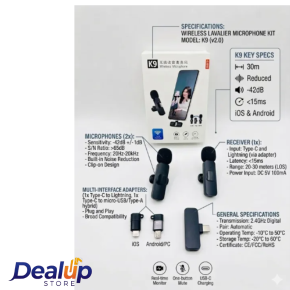 K9 3-in-1 Dual Wireless Microphone