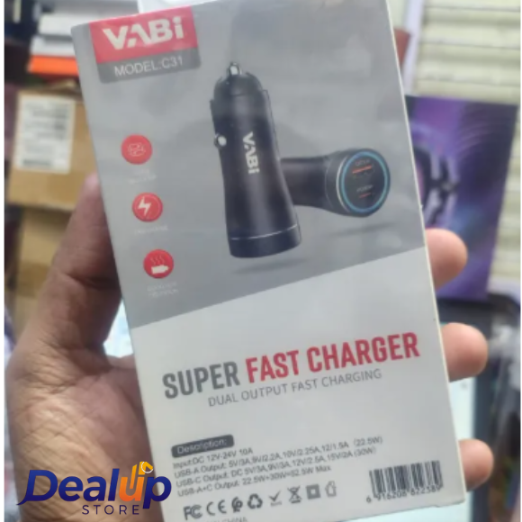 Power up your devices on the go with the VABI C31 52.5W Super Fast Car Charger, designed for high-speed, safe, and reliable charging in your car. With dual ports (USB-A + Type-C), you can charge two devices simultaneously without compromising speed.
